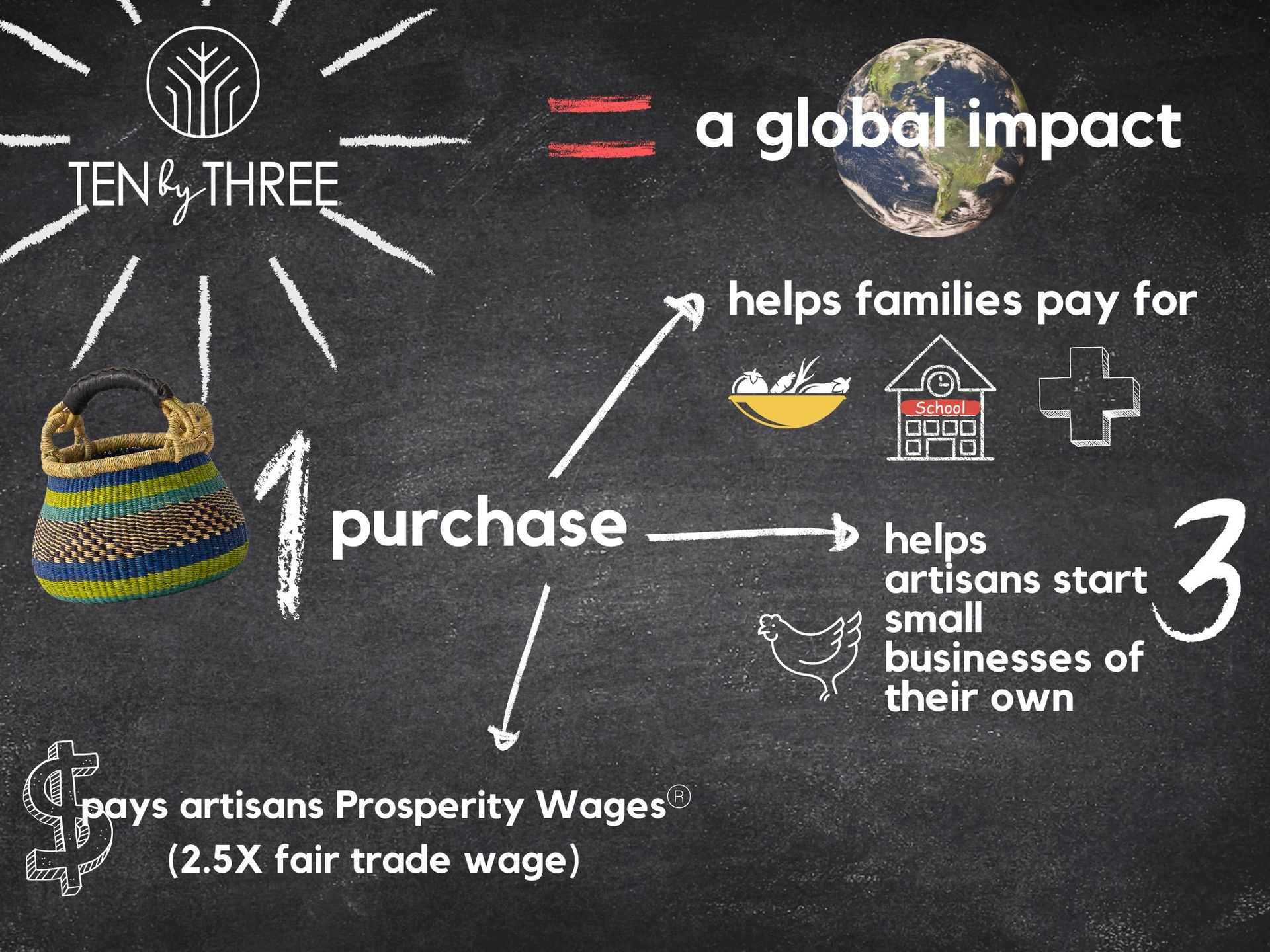 We believe in the power of fair trade and go above and beyond to ensure our artisans receive the compensation they deserve. Ten by Three pays at least two and a half times the fair-trade price for each basket, directly impacting the artisans' lives and their ability to support their families.